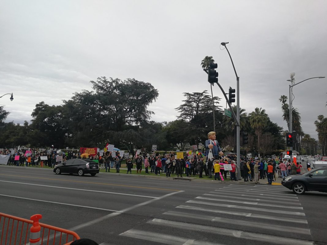 BEVERLY HILLS—On Tuesday, March 13, a number of individuals and groups gathered in mass at Beverly Gardens Park to voice their extreme displeasure with President Donald Trump. The protest was scheduled to coincide with President Trump’s first visit to California since being elected into office. President Trump was scheduled to hold a fund raiser in Beverly Hills, though it is unlikely his motorcade passed the demonstration.