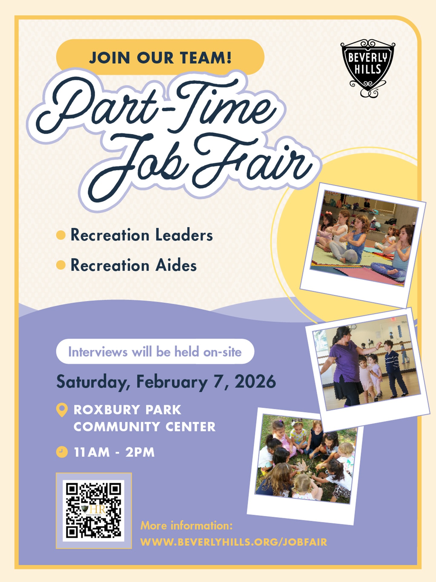 BEVERLY HILLS—On Sunday, January 25, the city of Beverly Hills announced that it is hosting a part-time hiring fair. Anyone looking for seasonal work should attend the event, which will be held on Saturday, February 7 from 11 a.m. to 2 p.m. at Roxbury Park Community Center.