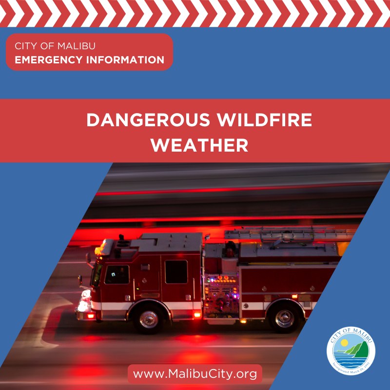 While Malibu City Hall is closed for the winter break until 1/2, city staff are closely monitoring wildfire weather conditions, and will post emergency information via alerts, the website www.malibucity.org, and social media, and are ready to activate the Emergency Operations Center if necessary.