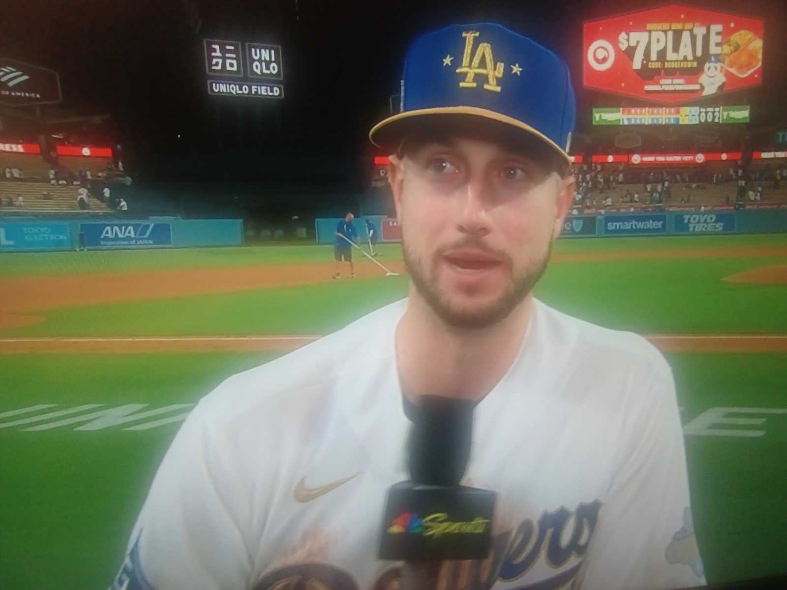 Kyle Tucker recorded his first hit as a Dodger with an RBI double in the seventh inning.