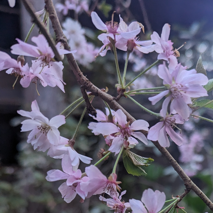 Wintertime bloom is actually a bit more reliable here than where it is more popular. Frost is too mild locally to damage it much, and mostly occurs earlier. Rain is mostly too light and too brief to dislodge much of the bloom. Bloom is a bit less profuse than that of other cherries because it is a bit more continuous. Therefore, it recovers from minor damage.