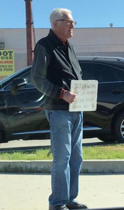WOODLAND HILLS—A panhandler in Woodland Hills is raising concerns by individuals in the area. Larry, a local beggar in the hills, has been panhandling in the Woodland Hills region carrying a sign that reads “Out of work. Out of Money. Please Help. Thank you.” In the corner sits and additional note: 80 years old.