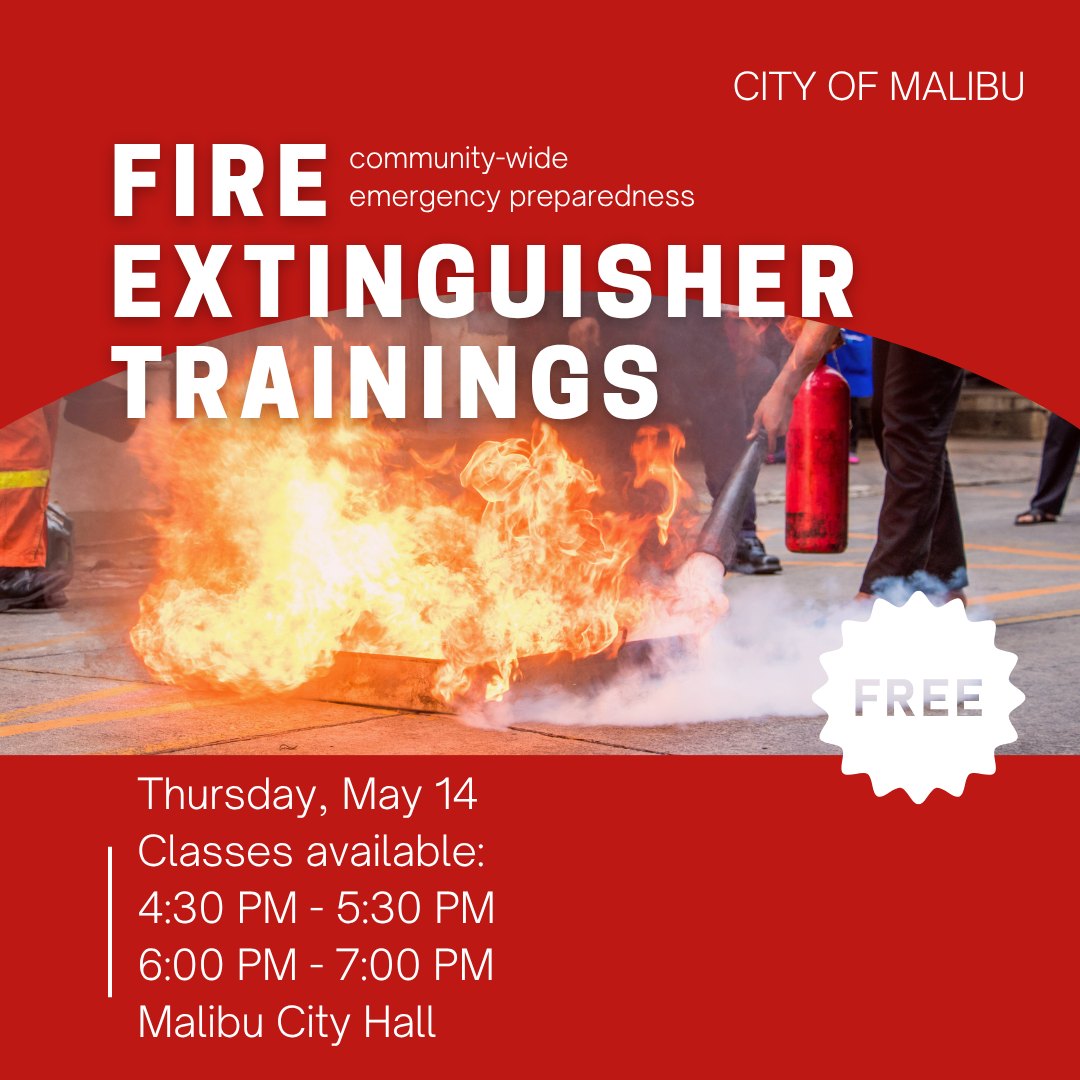 MALIBU—On Friday, April 24, the city of Malibu announced on its Facebook page that the city would be holding two free fire extinguisher trainings.