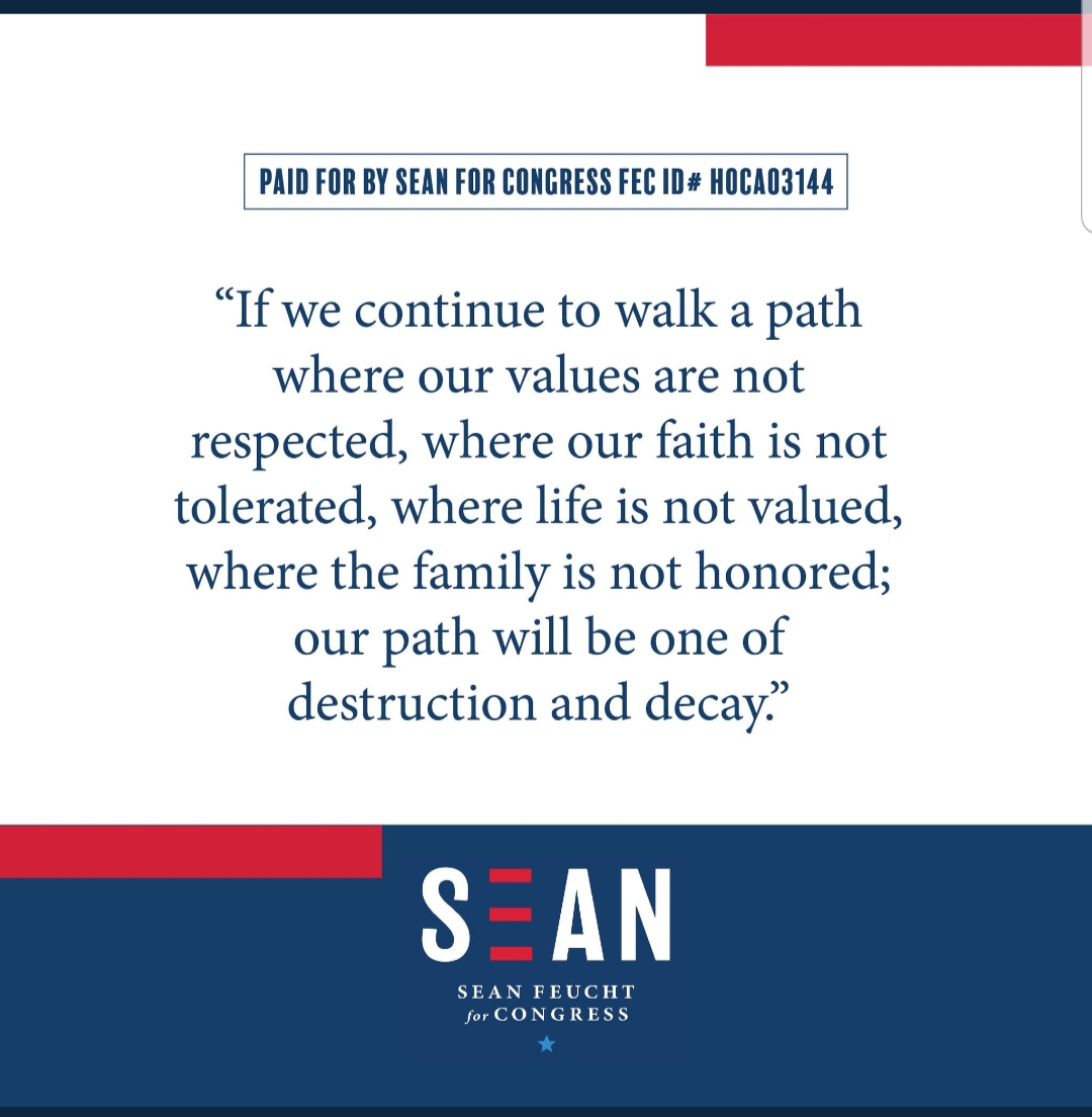 Feucht (pronounced FOYT) announced his run indicating, “Morals are low and Taxes are high.”
