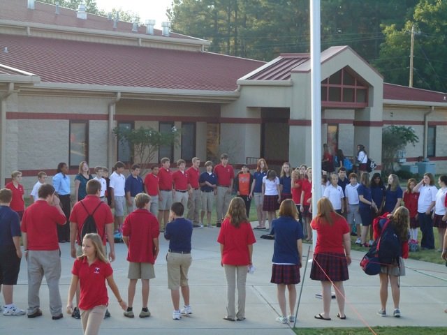 Prayer in school was banned by the United States Supreme Court in 1962 noting it was in violation of student’s First Amendment rights only allowing private prayer, and group prayer meetings with no pressure. Many schools participate in an annual “Meet me at the Pole” prayer event.