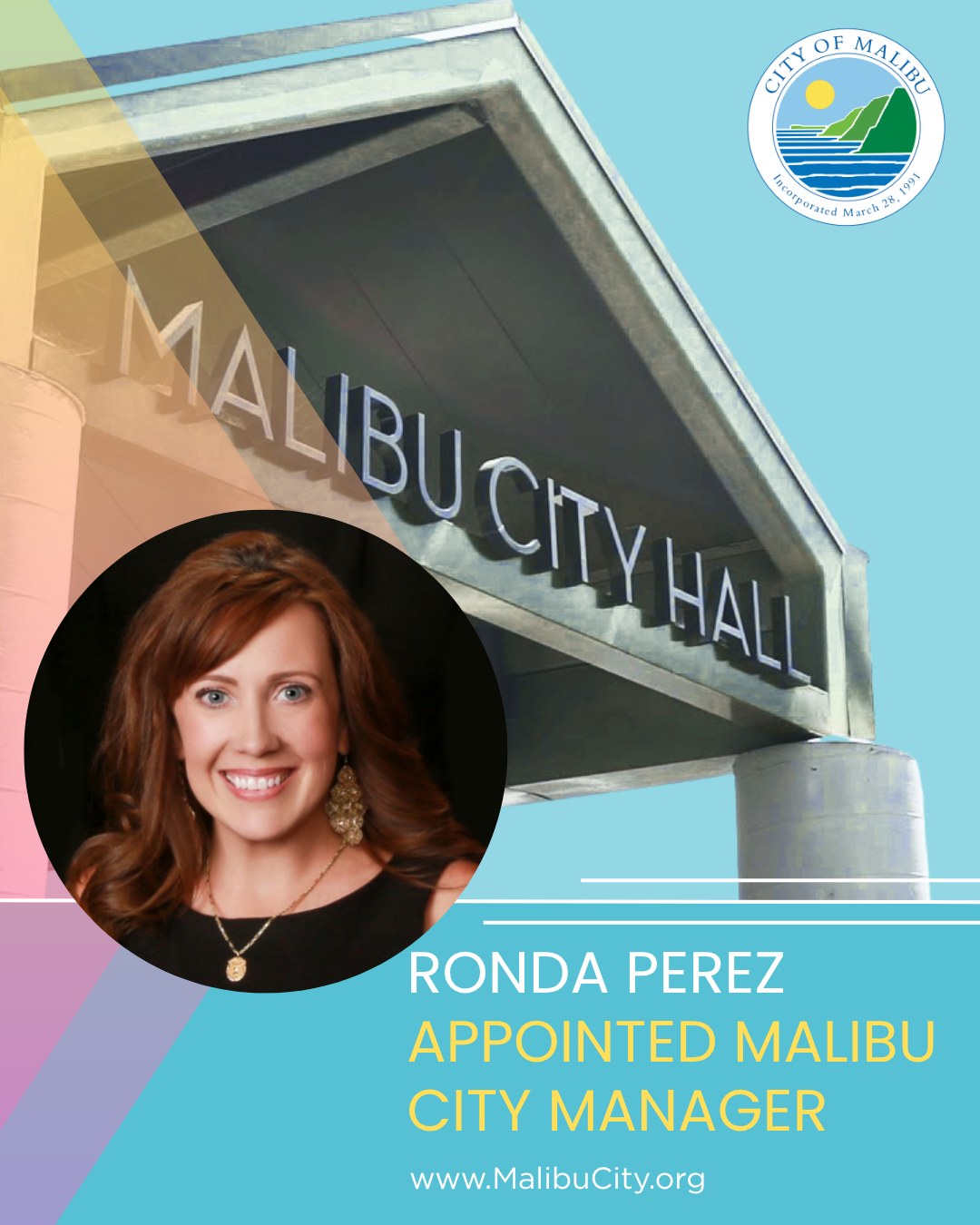 MALIBU—On Wednesday, July 30, the city of Malibu announced that Ronda Perez was appointed as the new City Manager. The Malibu City Council unanimously approved the appointment of Perez as Malibu’s City Manager, effective August 25. She brings close to two decades of experience in the public sector.
