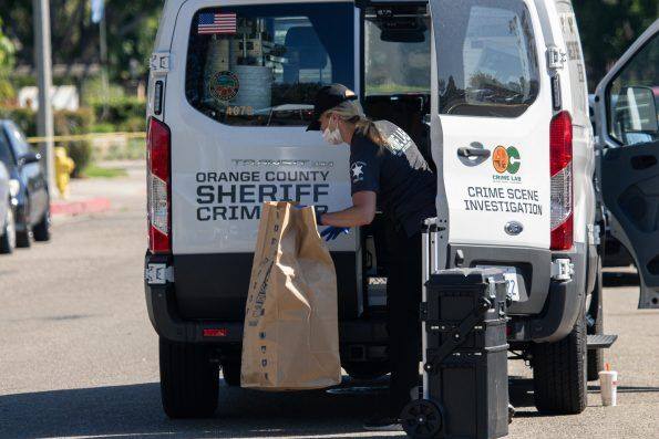 Officials from the Orange County Sheriff’s Department brought bloodhounds to search for the suspect connected to the stabbing.