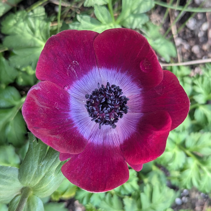 Floral color ranges through red, white, blue, pink and purple. Flowers mostly have black centers. White flowers may have green centers. Some varieties bloom with semi-double or double flowers, or flowers with two colors. Most flowers are about three inches wide or slightly wider. Anemones are good cut flowers; but cutting deprives the garden of bloom.